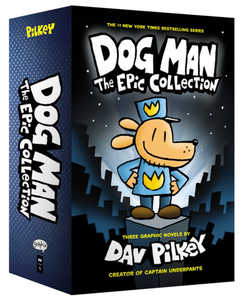 Dog Man is the crime-biting canine who is part dog, part man, and ALL HERO! This three-book boxed set includes the first, second, and third books in the Dog Man series: Dog Man, Dog Man Unleashed, and Dog Man: A Tale of Two Kitties.